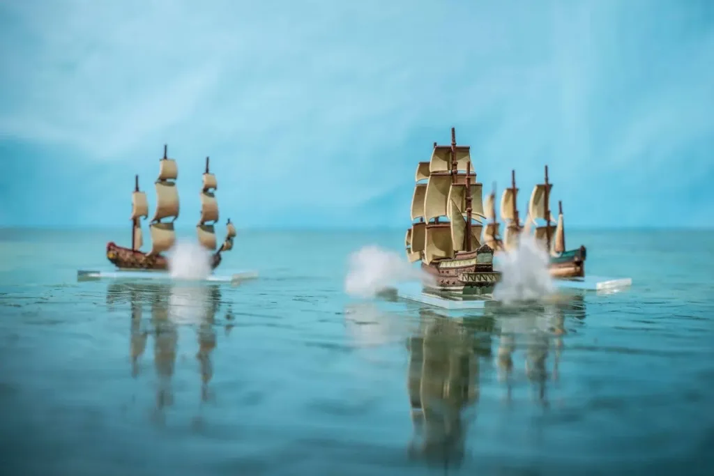 Ezzel a készlettel is kapunk kockákat, egy battlemat-et, a szárazföldet jelző lapok viszont nem tetszenek. Annál inkább a “kötélzet” – egy vitorlásnak legyen is – és a füst/tűzjelölők. Sokféle hajó, egész flották jöttek ki kiegészítőnek. Illetve egy új szabálykönyv, 3d tereptárgyak (szigetek, Martello-torony, hajóroncs), továbbá tengeri szörnyek – utóbbiak közül (a ceten kívül) a többi nehezen passzol egy történelmi játékhoz, a cápa és a narvál pedig a mérete miatt fura. Webáruháztól függően kb. 50 eurótól láttam a kezdőszettet.